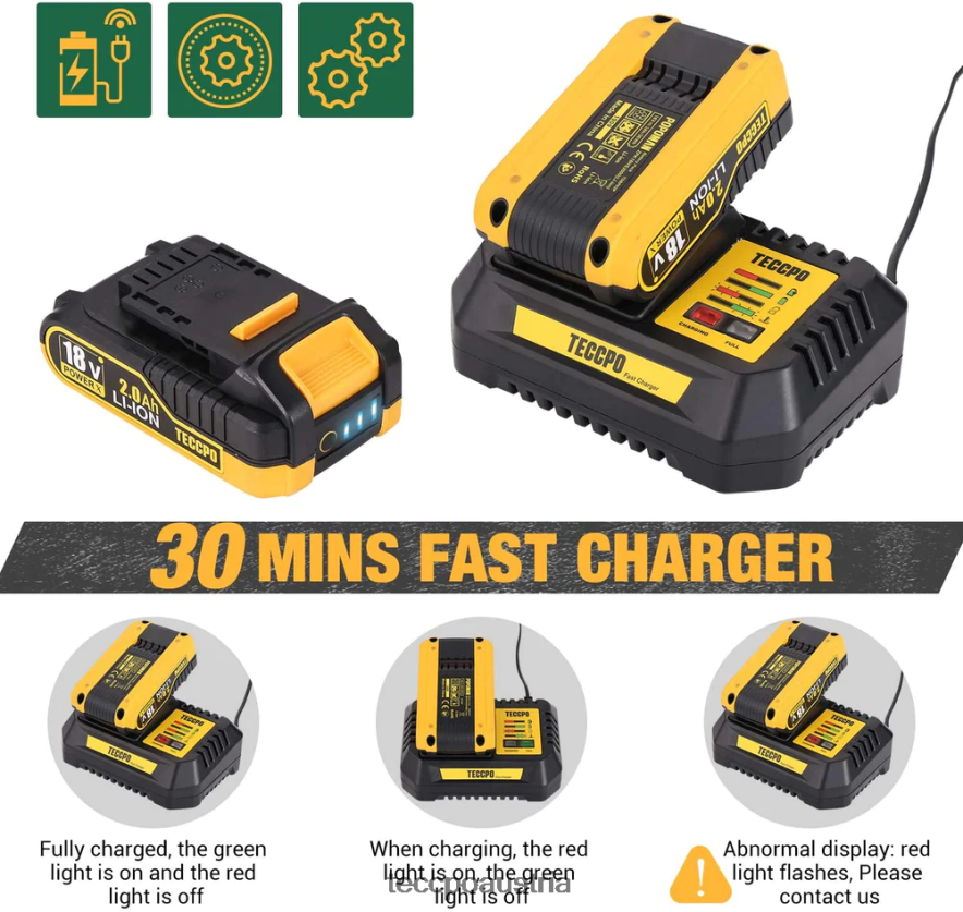 - Schnellladegerät (30 Minuten). Enthält 2 x 18 V / 2,0 Ah Lithium-Ionen-Akkus mit großer Kapazität und langer Lebensdauer. Das Aufladen über eine 4A-Steckdose dauert nur 30 Minuten für eine vollständige Aufladung.