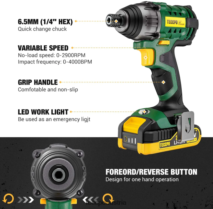 - 35 Zubehörteile im Lieferumfang enthalten: 1 x Teccpo Akku-Bohrschrauber 18 V, 1 x Teccpo Akku-Schlagschrauber 180 Nm, 1 x Verlängerung (60 mm), 5 x Schraubendreher-Bits (50 mm), 15 x Schraubendreher-Bits, 1 x Mutternadapter, 7 x Bohrer-Bits (nur zum Bohren von Metall), 1 x flexibler Schaft, 2 x Batterien, 1 x 30 Minuten Schnellladegerät, 2 x Gürtelschnallen, 1 x Bedienungsanleitung. Ersatzakku 4,0 Ah – tdbp04p.