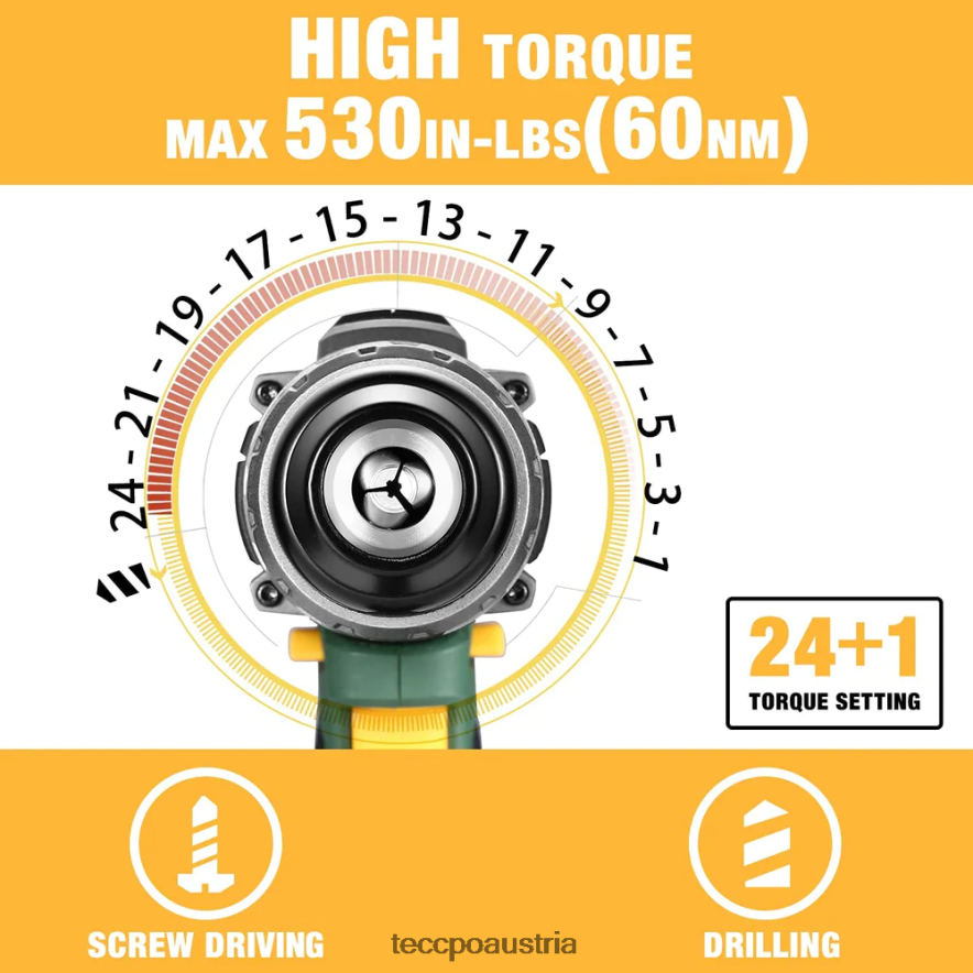TECCPO Bürstenloser Akku-Bohrschrauber mit 60 nm TVH8J8 Bohrer und Treiber