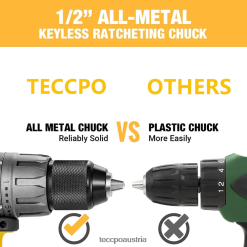 - (1/2″ Metallfutter), Ganzmetallgetriebe und 1/2″ schlüssellose Ratsche Spannfutter bieten maximale Haltbarkeit und hervorragende Zubehörkompatibilität; F/R-Taste und Auslöser mit variabler Geschwindigkeit sind vorhandenzum Bohren und Befestigen verfügbar.
