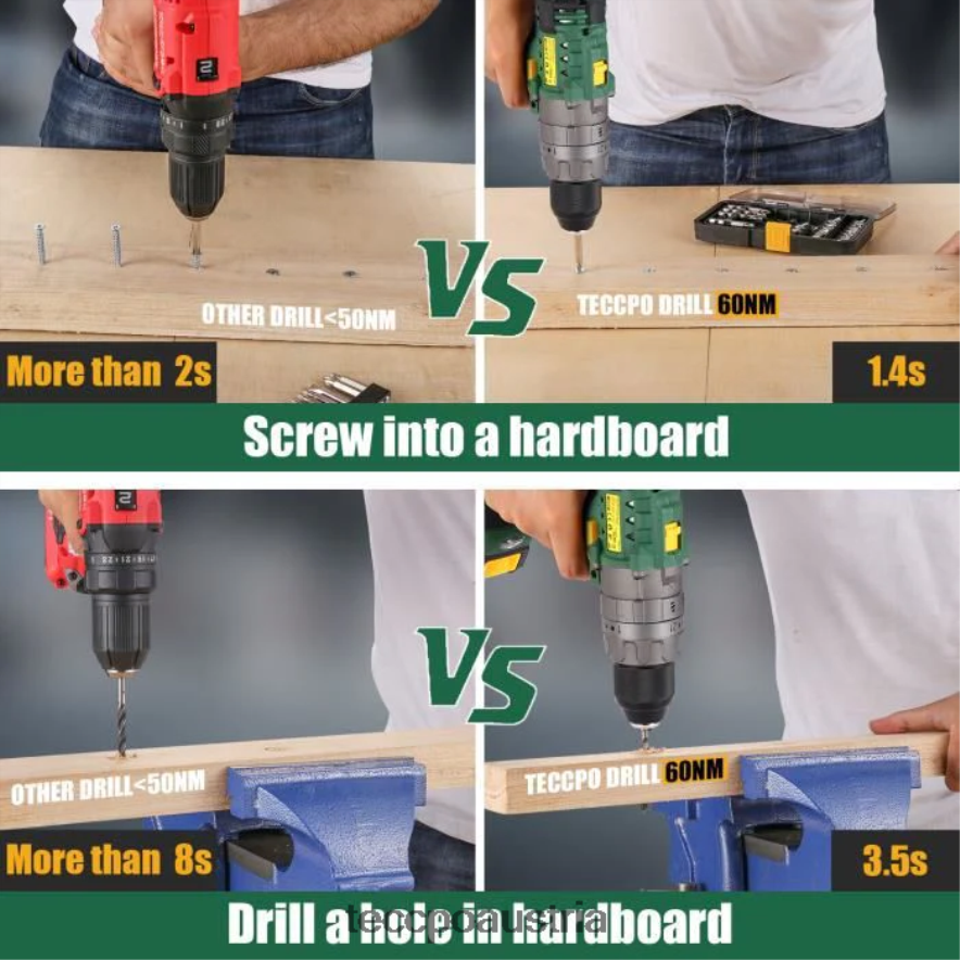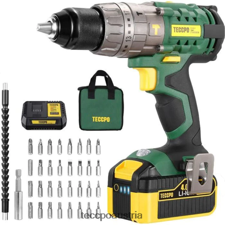 TECCPO Akku-Schlagschrauber mit 2,0/4,0-Ah-Akku und 30/34 Zubehörteilen TVH8J9 Bohrer und Treiber
