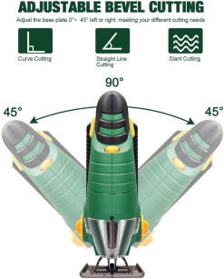 - (45-Grad-Fasenschneiden und werkzeugloser Sägeblattwechsel) Mit der verstellbaren Fußplatte kann die Stichsäge sowohl nach rechts als auch um bis zu 45 Grad abgeschrägt werden links, multifunktionstauglich. Die werkzeuglose Klingenklemme ermöglicht einen einfachen und sicheren Klingenwechsel innerhalb von 2 Sekunden. Im Lieferumfang der Säge sind zwei separate Sägeblätter zum Holzschneiden und Weichmetallschneiden enthalten, die unterschiedliche Schneidanforderungen erfüllen.