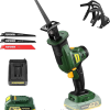 - Ergonomisches und sicheres Design . Im Vergleich zu herkömmlichen Kreissägen ist sie aufgrund ihres leichten und kompakten Designs tragbar und kann sowohl im Innen- als auch im Außenbereich getragen werden. Die hintere Motorposition sorgt für eine gut ausbalancierte Säge, während ein schmalerer gummierter Handgriff für einen sicheren Einhandgriff mit weniger Ermüdungserscheinungen sorgt. Eine durch den Daumen aktivierte Sicherheitstaste zum Auslösen des Auslösers verhindert ein versehentliches Auslösen des Auslösers und lässt sich dennoch leicht mit nur einer Hand aktivieren.