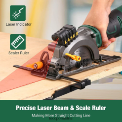 - Präzise Laserführung und Staubabscheidung. die eingebaute reDie Laserführung und das Maßstabslineal sorgen für eine präzise gerade Linie beim Schneiden von Holz, Metall, Fliesen, PVC-Rohren usw. und verbessern Ihre Arbeitseffizienz und Schneidleistung erheblich. Ein integrierter Staubanschluss und ein mitgelieferter Vakuumadapter ermöglichen den Anschluss an einen Werkstattstaubsauger oder ein Staubsammelsystem und tragen so zu einer saubereren Arbeitsumgebung bei.