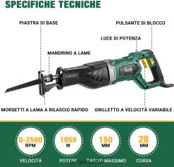 TECCPO 6,5 Ampere, 3000 U/min, kabelgebundene Stichsäge mit Laserführung TVH8J21 Holzbearbeitung