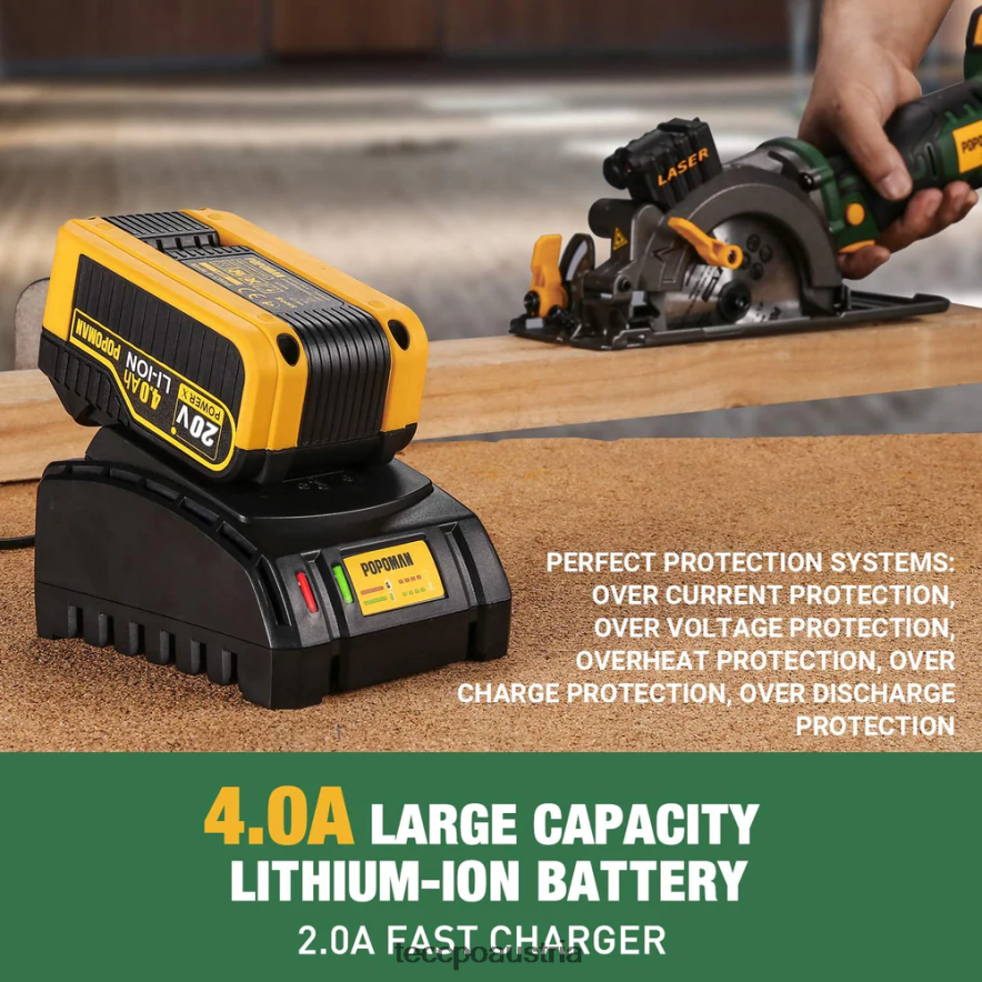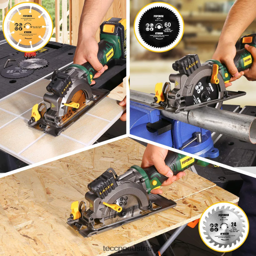 - [Zubehör & Qualitätsversprechen] Packung enthält: 1 x Popoman 20V Akku-Kreissäge, 1 x 4,0-Ah-Akku, 1 x Schnellladegerät, 3 x Klinge: 115 mm (HSS/TCT/Diamant), 1 x Führungslineal aus Metall, 1 x Inbusschlüssel, 1 x Bedienungsanleitung, 1 x Staubschlauch, 1 x 24-monatiges Qualitätsversprechen. Popoman bietet ein 24-monatiges Qualitätsversprechen für alle Produkte. Bitte kontaktieren Sie uns, wann immer Sie Hilfe benötigen.