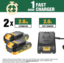 - (2x 2000-mAh-Superior-Batterien & 1 h-Schnellladegerät) Dieses kabellose Kombiset enthält 2 Stück 2,0-Ah-Lithium-Ionen-Akkus, damit die Schlagbohrmaschine und der Schlagschrauber gleichzeitig laufen. Die Laufzeit beträgt 5–10 Minuten und ist länger als bei den meisten 1500-mAh-Teiggeräteny-Produkte auf dem Markt. Das vollständige Aufladen eines 2a-Ladegeräts dauert etwa 60 Minuten, wodurch bis zu 50 % Zeit gespart werden kann. Kommt mit 2 Zubehörteilen (1 * Kreuzschlitz-Bit, 1 * Schlitz-Bit), es kann Ihre unterschiedlichen exklusiven Bedürfnisse erfüllen.