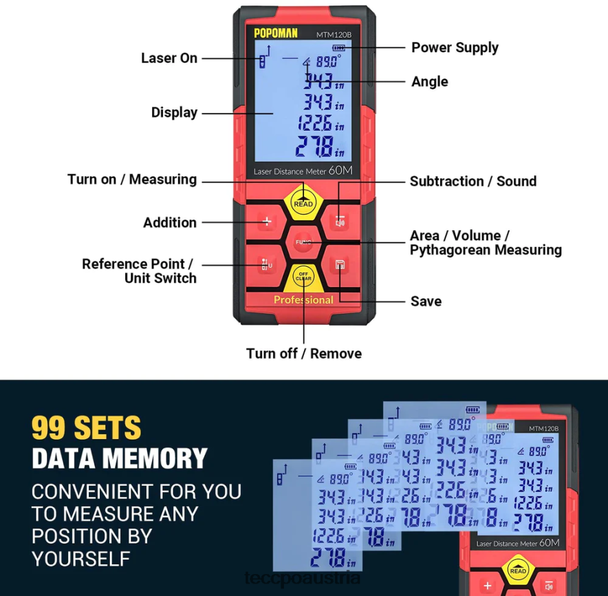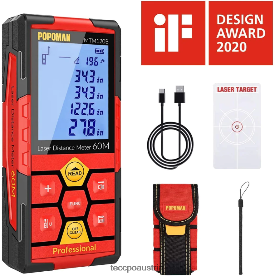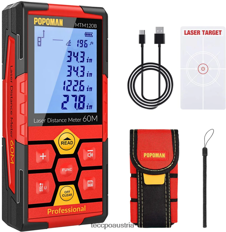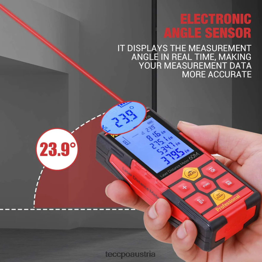 - (höhere Genauigkeit)Messbereich: 0,16–196 Fuß, Genauigkeit: ca. 1/16 Zoll; Elektronischer Winkelsensor, Echtzeit-Anzeige des Messwinkels, genauere und intuitivere Daten