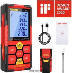 - (Paketinhalt) Popoman-Lasermessgerät 196 Fuß; 1 x USB-Ladekabel; 1 x Bedienungsanleitung; 1 x tragbare Tasche; 1 x tragbares Armband; 1 x Reflexionsplatte; Hinweis: Laserklasse: Klasse 2 (IEC/EN60825-1/2014)