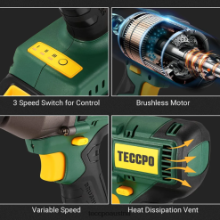 TECCPO Bürstenloser Akku-Bohrschrauber mit 60 nm TVH8J8 Bohrer und Treiber