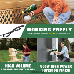 - [600 Watt starke Leistung und tolles Finish] – Starke Leistung erleichtert das Sprühen von Farbe mit einer Viskosität von bis zu 100 din/s, höher als bei normalen Artikeln. Es kann ein glattes und großartiges Finish ohne Pinselspuren erzeugen, was Ihr bestes elektrisches Farbspritzgerät für den Garten, Zäune, Innenwände, Decken und Kunsthandwerk usw. sein wird. Ein Hochleistungs-Kupfermotor liefert mehr Leistung und liefert weniger Wärme als Der herkömmliche kupferbeschichtete Aluminiummotor verlängert die Lebensdauer Ihres Sprühgeräts erheblich.
