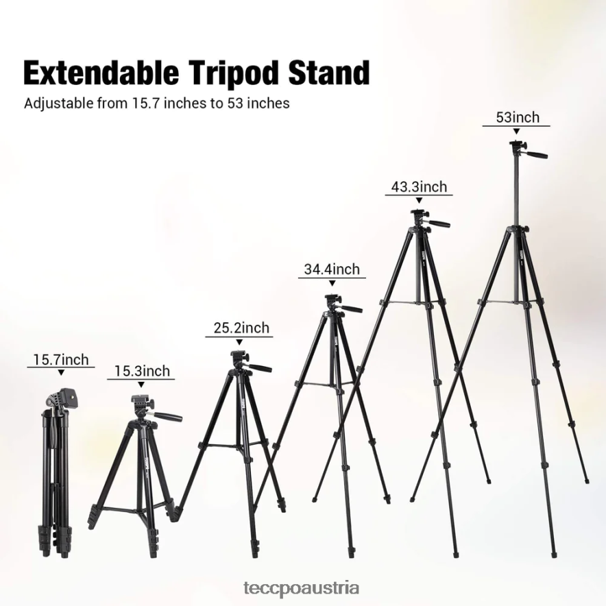 - [strapazierfähiges Material & einstellbare Höhe] – die Kratzfestes Stativ aus Aluminiumlegierung und hat außerdem eine maximale Tragfähigkeit von 3 kg, was sehr robust und langlebig ist. Das Stativ verfügt über einen dreistufigen versenkbaren Verriegelungsknopf an der Unterseite und einen ausziehbaren oberen Teil. Es gibt vier Teleskopmodi, maximal 53 Zoll und minimal 15,3 Zoll. Dadurch können Sie für eine bessere Sicht in verschiedenen Höhen fotografieren