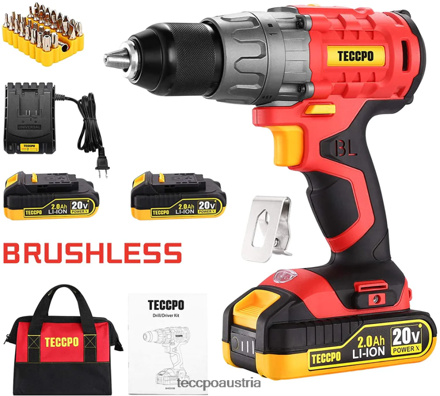 TECCPO Bürstenloser Akku-Bohrschrauber mit 60 nm TVH8J8 Bohrer und Treiber