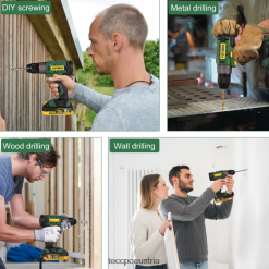 (125-teiliges Bohrer- und Schraubenset)11 x Bohrer für Metall 1,5–6,5 mm; 6 x Bohrer für Zement 4–10 mm; 5 x Bohrer für Holz 4–10 mm; 4 x Bohrer für Kelle 13–22 mm; 50 x 25 mm Schraubendreherbits; 9 x 50-mm-Schraubendreherbits; 5 x 6–10 mm Steckschlüssel; 1 x Bit-Adapter; 1 x Fräsen; 2 x Lochmessschraubendreher; 2 x Stellungsregler; 15 x Wandausdehnungsrohr; 15 x kleine Hardware-Schraube.