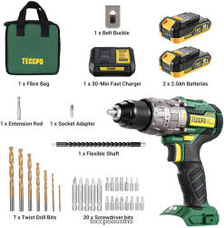 (Ersatzbatterie separat erhältlich). ) 2.0 Akkus passend für alle Bohrmaschinen und Schlagschrauber von Teccpo und Popoman. Abgesehen davon enthält der Teccpo 18 V 4,0 Ah Akku (TDBP02P) und das 125-teilige (MTH400) Bohrerset fast alle Arten von Zubehör und erfüllen Ihre Bedürfnisse.
