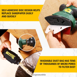 - ( wirtschaftlich ) Der Staubbeutel aus reiner Baumwolle ist im Vergleich zu den meisten Staubbehältern waschbar und recycelbar und verfügt außerdem über eine extra weite Öffnung für eine schnellere Entsorgung. Der Schleifer wird mit 12 Stück Schleifpapier (6 Stück mit Körnung 80 und 6 Stück mit Körnung 180) geliefert, damit der Schleifer lange hälteine lange Lebensdauer und erfüllen Ihre unterschiedlichen Anwendungen.