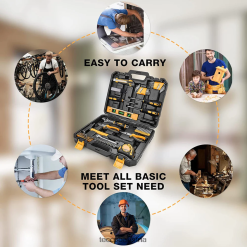 (perfektes Geschenk und 24-monatige Qualitätsgarantie) 48x Schraubendreherbits, 11x Satz Schraubenschlüssel, 9x Steckschlüsselsatz, 1x Messer, 1x 8″ Rollgabelschlüssel, 1x span>x 6″ Spitzzange, 1x 6″ Universalzange, 1x 300g Hammer, 1x 1/ 4 Ratschenschlüssel, 1x Taschenlampe, 1x 5m Maßband, 2x Schraubendreher, 1xWasserwaage , 1x Satz Schraubenschlüssel usw.